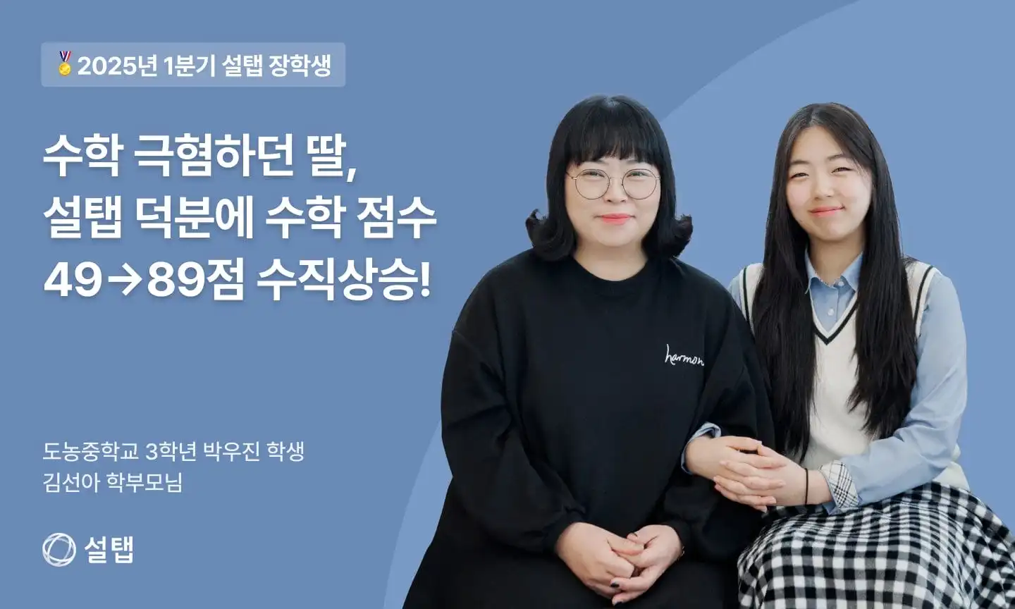 수학 극혐하던 딸, 설탭 덕분에 수학 점수 49→89점 수직상승!