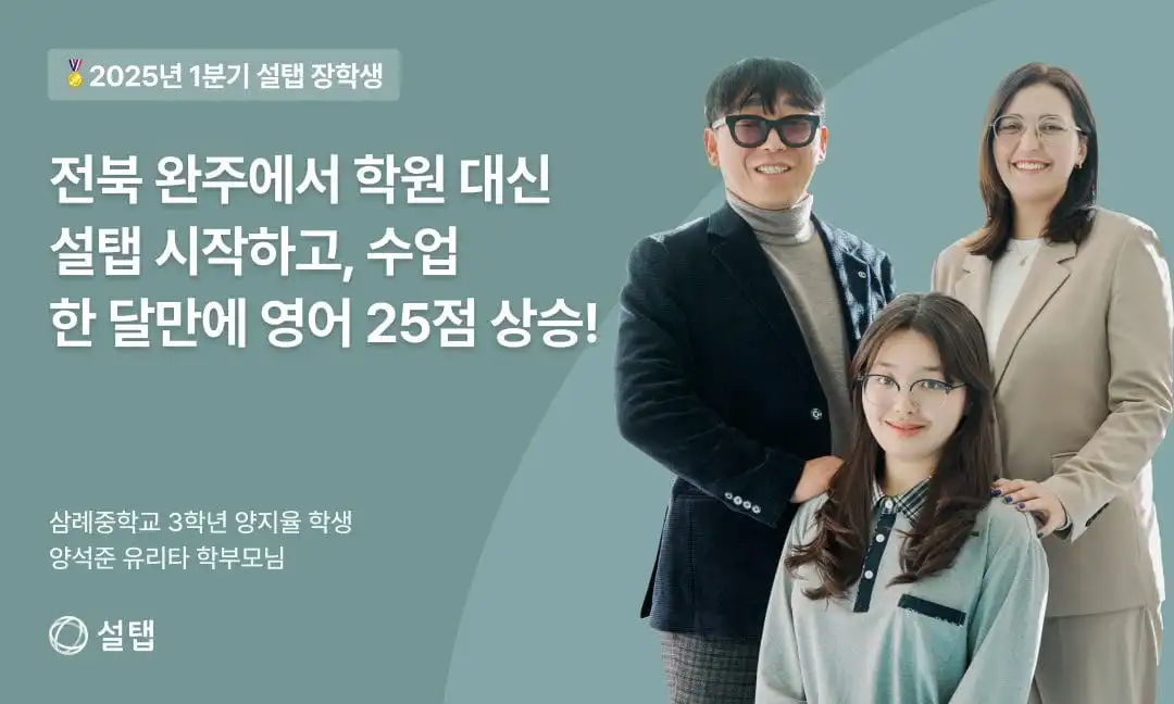 전북 완주에서 학원 대신 설탭 시작하고, 수업 한 달 만에 영어 25점 상승!
