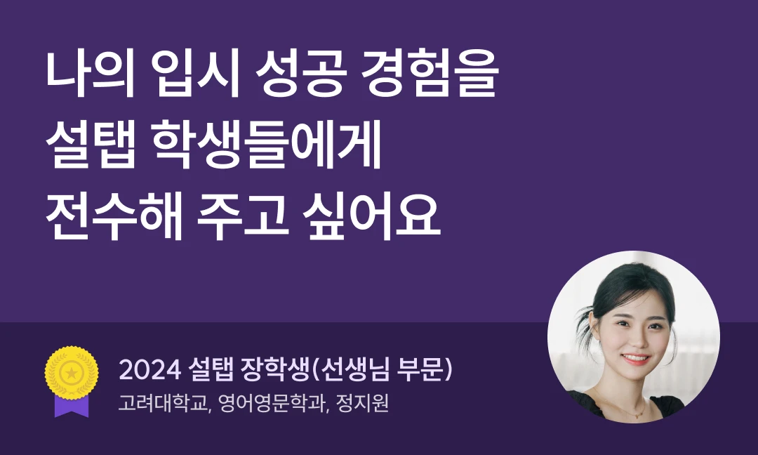 나의 입시 성공 경험을 설탭 학생들에게 전수해 주고 싶어요