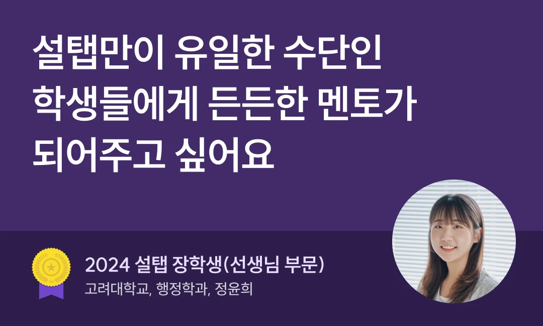 설탭만이 유일한 수단인 학생들에게 든든한 멘토가 되어주고 싶어요