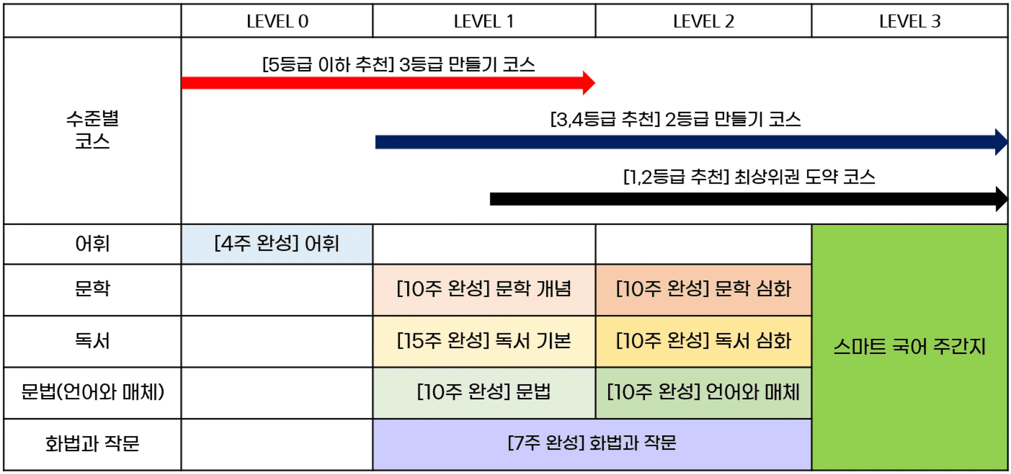 LEVEL 1 (기본서+워크북) → LEVEL 2 (심화서+워크북) → LEVEL 3 주간지