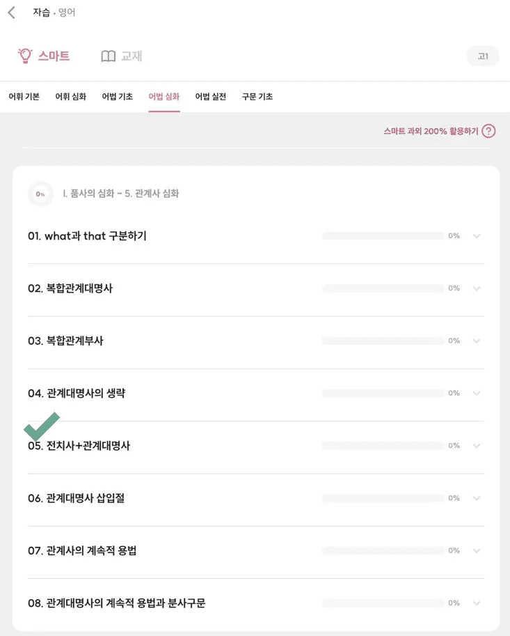 특정 과목에서 약점을 극복하고 싶다면? => 소단원 선택 학습