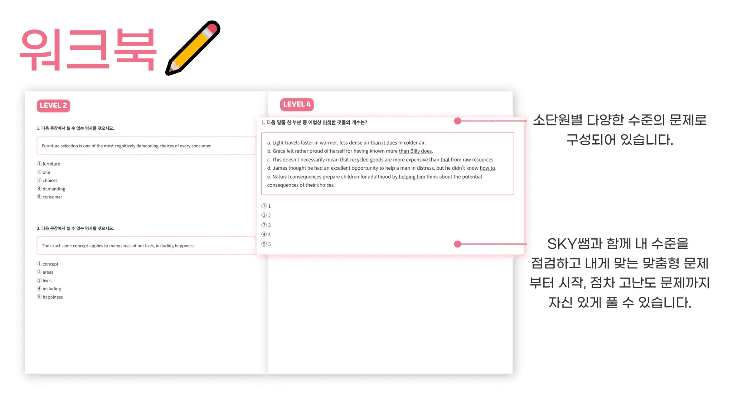 · 유형 전략을 반복적으로 적용하여 유형에 익숙해질 수 있도록 워크북 추가 구성