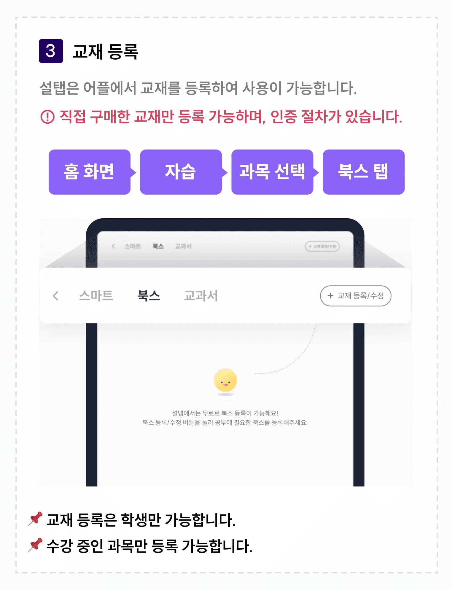 구매한 교재를 설탭 어플에서 얼마든지 등록해 사용할 수 있습니다!